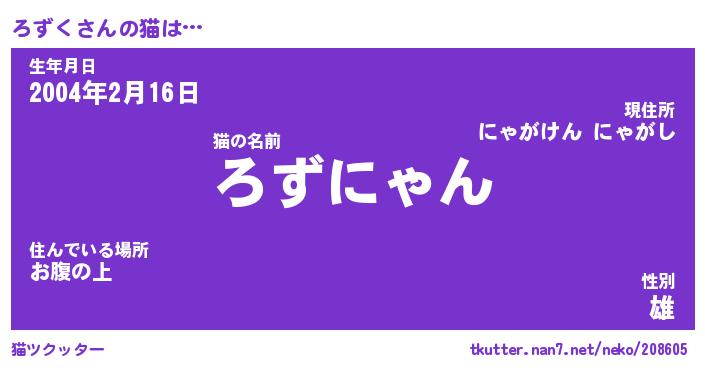 | ヘコむあだ名 | 『ろずにー』『なまこ酢』『ろずっぺ』 |