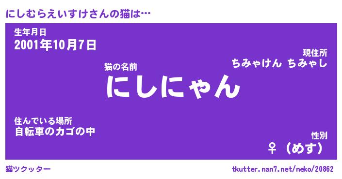 | ポケモン風あだ名 | 『ニシチュウ』『ニシムダネ』 |