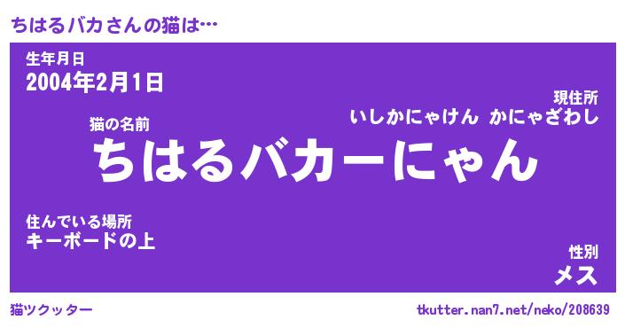| ファンタジー風あだ名 | 『チハフェル』『エターナルチハルバカー』 |