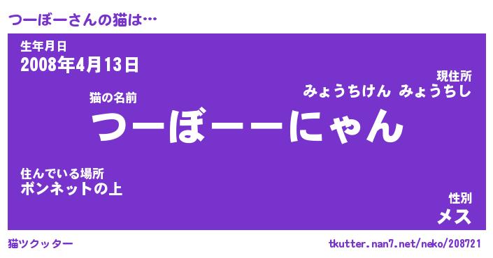 | 意味不明あだ名 | 『ペロリンつーぼー』『永久保存つーぼー』 |