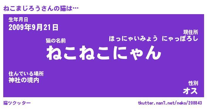 | ポケモン風あだ名 | 『ネコチュウ』『ネコマダネ』 |