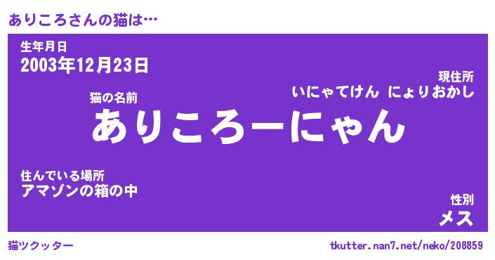 | 意味不明あだ名 | 『ペロリンありころ』『永久保存ありころ』 |