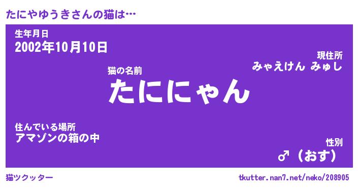 | ポケモン風あだ名 | 『タニチュウ』『タニヤダネ』 |