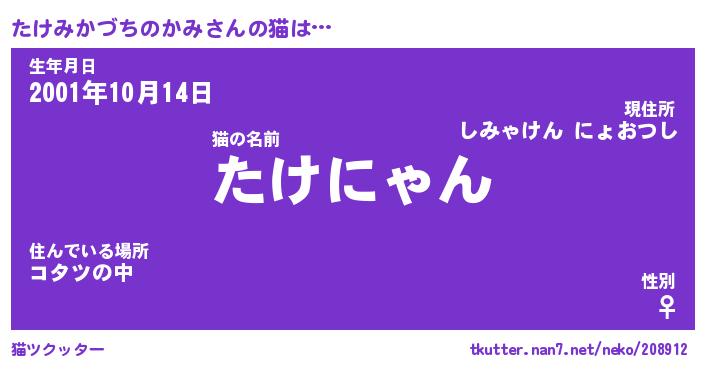 | ヘコむあだ名 | 『たけにゅー』『つくし』『たけを』 |