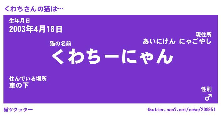| ヘコむあだ名 | 『くわにゅー』『牛乳』『くわお』 |
