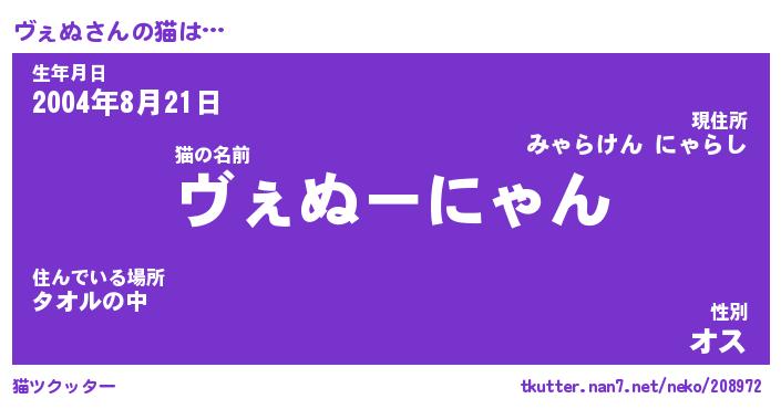 | ポケモン風あだ名 | 『ヴェチュウ』『ヴェヌダネ』 |