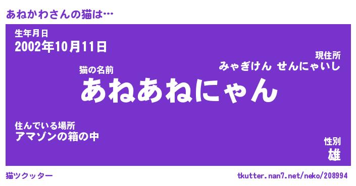 | 2回繰り返すあだ名 | 『あねあね』『ああねね』 |