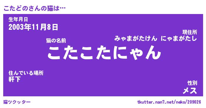| 意味不明あだ名 | 『ペロリンこたどの』『永久保存こたどの』 |