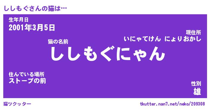 | 男性向けラノベタイトル風あだ名 | 『ししもぐの憂鬱』 |