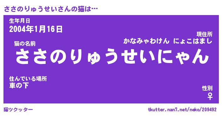 | ポケモン風あだ名 | 『ササチュウ』『ササノダネ』 |