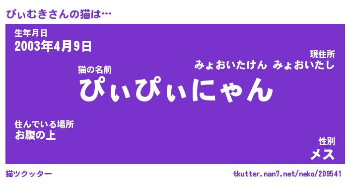 | 意味不明あだ名 | 『ペロリンぴぃむき』『永久保存ぴぃむき』 |