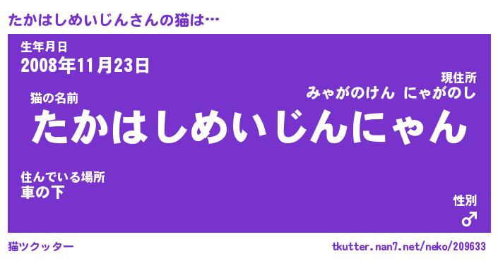 | 番長 | たかはしめいじん、またの名を・・・!『まさかのたかはしめいじんにゃん』 |