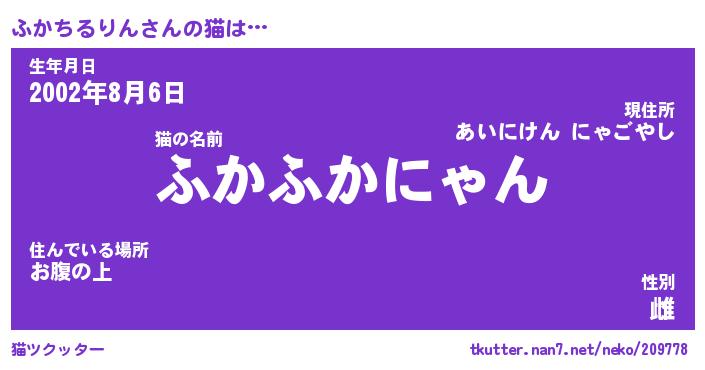 | ポケモン風あだ名 | 『フカチュウ』『フカチダネ』 |