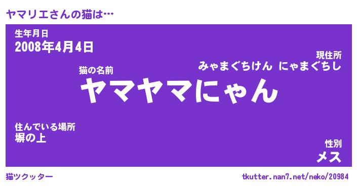 | ツイッター | ヤマリエさんのツイッターID『namakemono_nyan』 |