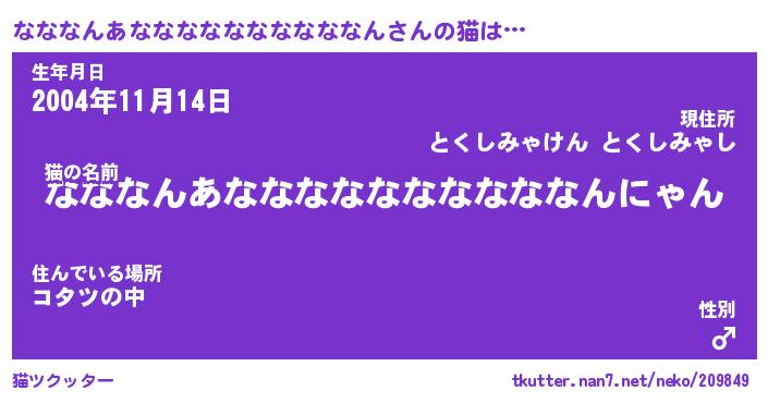 | 女子向けラノベタイトル風あだ名 | 『(仮)なななんあななななななななななんのやんごとなき事情』 |