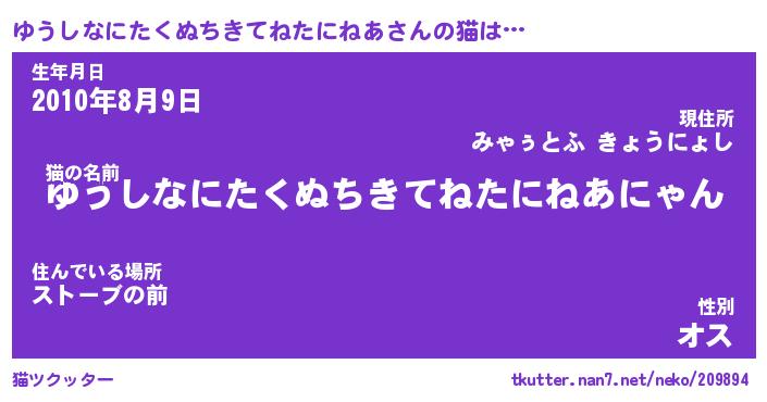 | 胡散臭い通販商品みたいなあだ名 | 『必ず成功する水晶球…その名も「ゆうしなにたくぬちきてねたにねあ」』 |