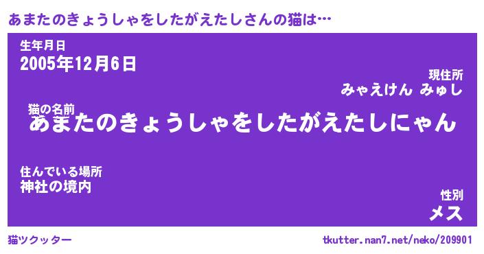| 生年月日? …「くろねこ」 | 8月01日 10:16 |