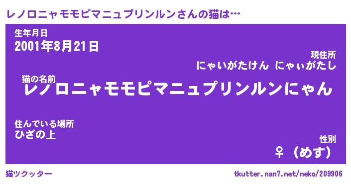 | ツイッター | レノロニャモモピマニュプリンルンさんのツイッターID『konnyaku_man』 |