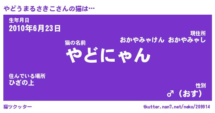 | 生年月日? …「くろねこ」 | 8月01日 10:16 |