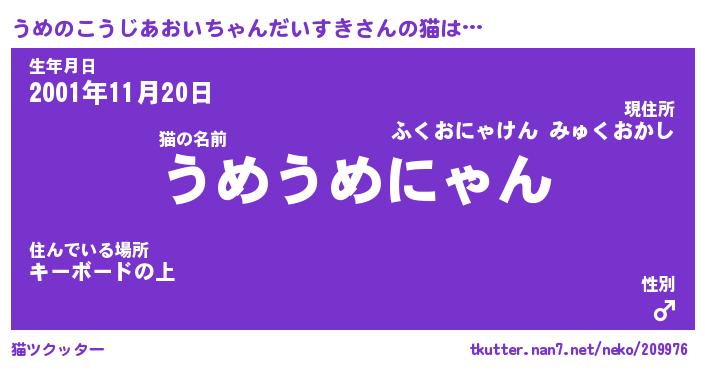| ファンタジー風あだ名 | 『ウメフェル』『ファントムウメス』 |