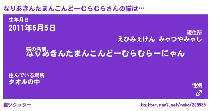 | 生年月日? …「くろねこ」 | 8月01日 10:16 |