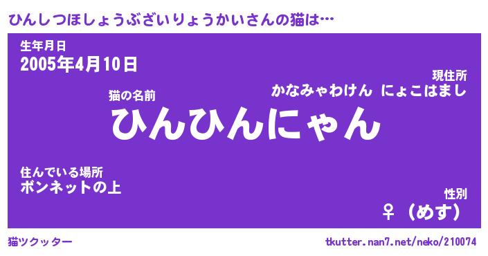 | ヘコむあだ名 | 『ひんにゅー』『豆乳』『ひんを』 |