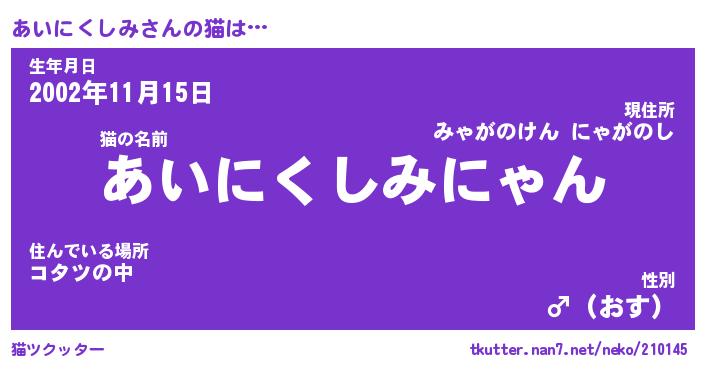 | 肩書あだ名 | 『あいにくしみCEO』『あいにくしみ副担任』 |
