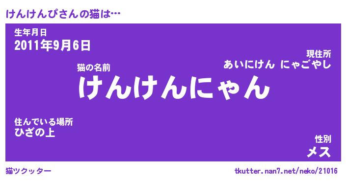 | ツイッター | けんけんぴさんのツイッターID『dendenmushi_kun』 |