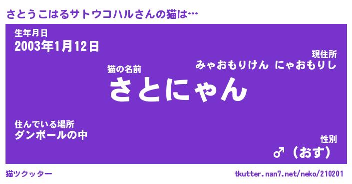 | ツイッター | さとうこはるサトウコハルさんのツイッターID『kikurage_nyan』 |