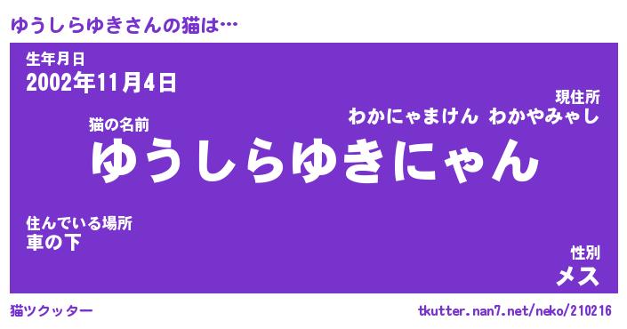 | ポケモン風あだ名 | 『ユウチュウ』『ユウシダネ』 |