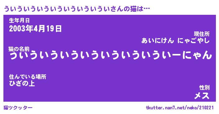 | 学校 | ういういういういういういういうい校長が勤める学校の名前『都立女子にゃんにゃん中学校』 |