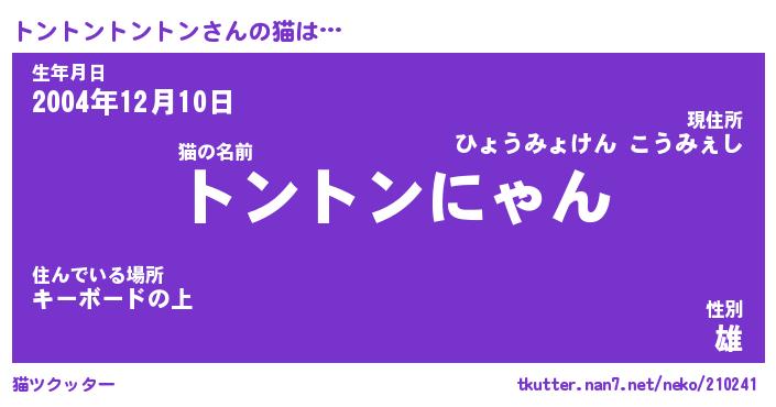 | ツイッター | トントントントンさんのツイッターID『katatsumuri_nyan』 |
