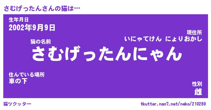 | 男性向けラノベタイトル風あだ名 | 『さむげったんの憂鬱』 |