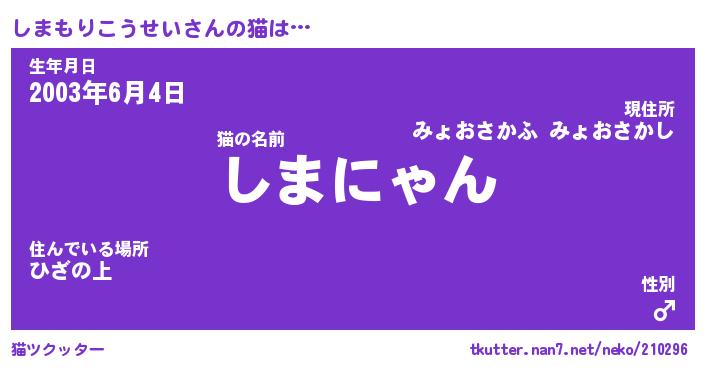 | 男性向けラノベタイトル風あだ名 | 『しまもりこうせいの憂鬱』 |