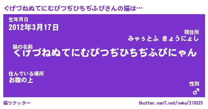 | 料理風あだ名 | 『ほっこり♪ぐげづねぬてにむぴつぢひちぢふぴの味噌そぼろ煮』 |