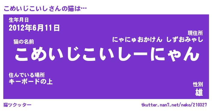 | 恥ずかしいあだ名 | 『プリティーこめいじこいし』『こめちん』 |