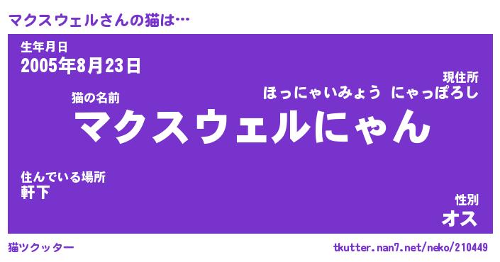 | 男性向けラノベタイトル風あだ名 | 『マクスウェルの憂鬱』 |