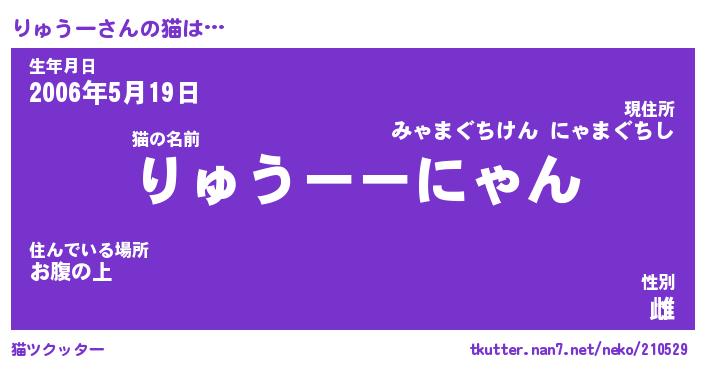 | 意味不明あだ名 | 『ペロリンりゅうー』『永久保存りゅうー』 |