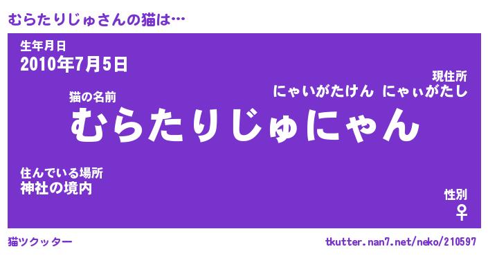 | 男性向けラノベタイトル風あだ名 | 『むらたりじゅの憂鬱』 |