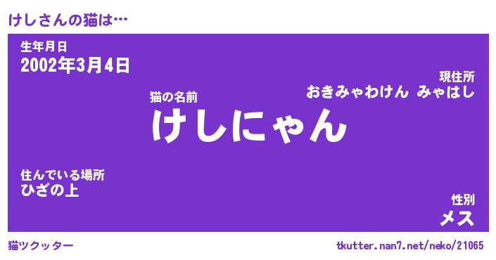 | 男性向けラノベタイトル風あだ名 | 『けしの憂鬱』『ノーゲーム・ノーケシ』 |
