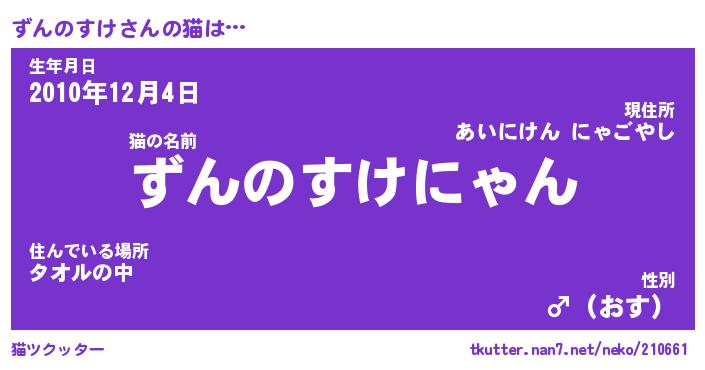 | ポケモン風あだ名 | 『ズンチュウ』『ズンノダネ』 |