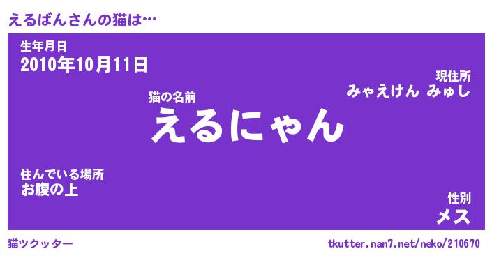 | 意味不明あだ名 | 『ペロリンえるばん』『永久保存えるばん』 |