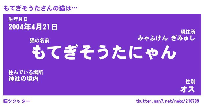 | 男性向けラノベタイトル風あだ名 | 『もてぎそうたの憂鬱』 |