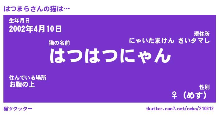 | 生年月日? …「くろねこ」 | 8月01日 10:16 |