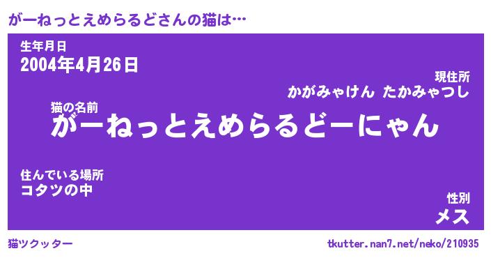 | 胡散臭い通販商品みたいなあだ名 | 『億万長者になれる水晶球…その名も「がーねっとえめらるど」』 |