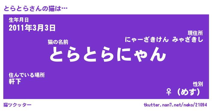 | ポケモン風あだ名 | 『トラチュウ』『トラトダネ』 |