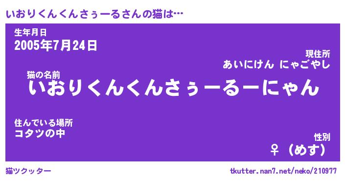 | 意味不明あだ名 | 『ペロリンいおりくんくんさぅーる』 |
