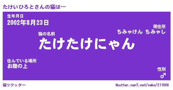 | 2回繰り返すあだ名 | 『たけたけ』『たたけけ』『うろうろ』 |