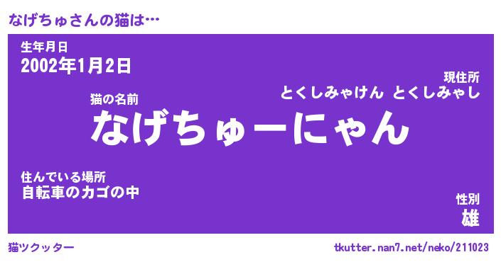 | 2回繰り返すあだ名 | 『なげなげ』『ななげげ』『いじいじ』 |