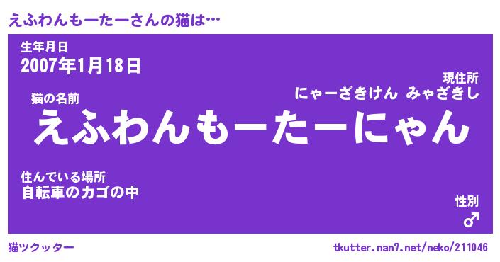 | 欧米人風あだ名 | 『マイケルえふわんもーたー』 |